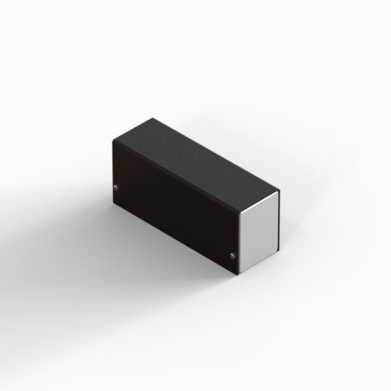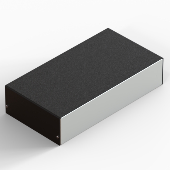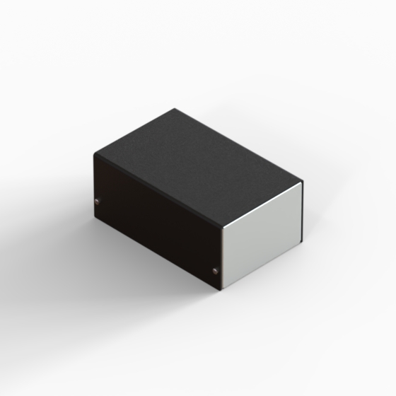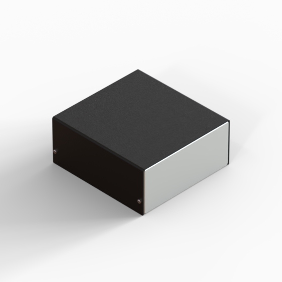 Aluminium enclosures with silver metalised base and black cover. Simple and speedy to assemble, with four screws to put in place.