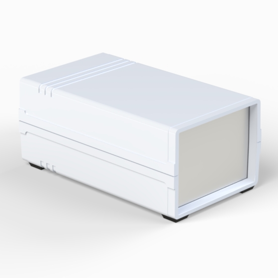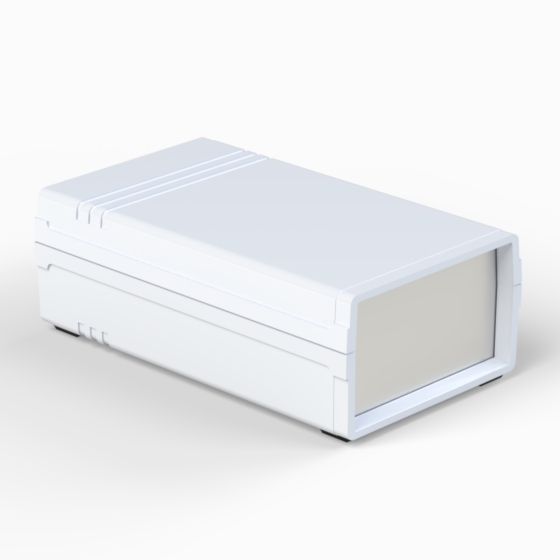 An ABS enclosure with two 1 mm aluminium panels. A 9V battery compartment with a Snap-On lid. Each half-shells has mounting studs. Mat surface finish. Closing by only two screws. Available with plastic panels (Mod. PPD1. PPD2, PPD3).