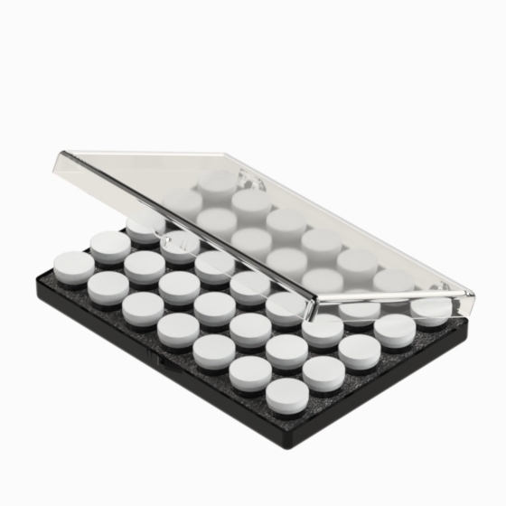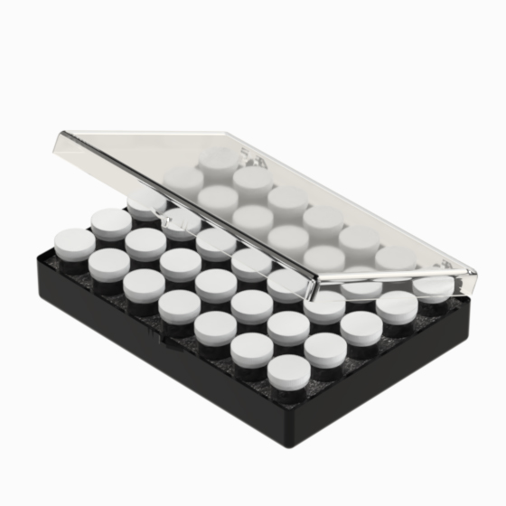Storage boxes are ideal to store and organise small electronic components. They are moulded in polystyrene with transparent hinged lids. The “SMD” boxes hold eighty-nine tubes (Mod. “T25” / “T40”). Two different models available.