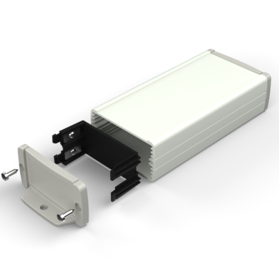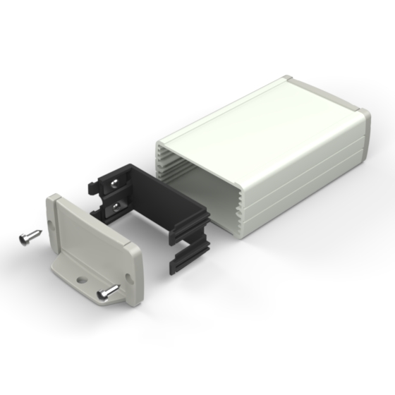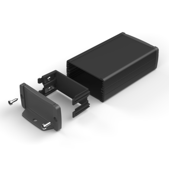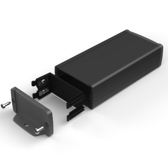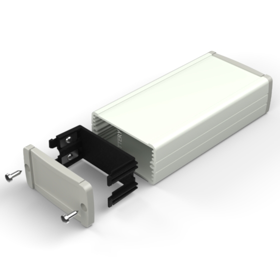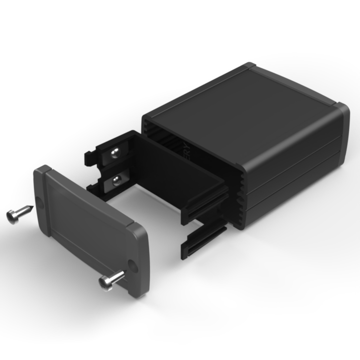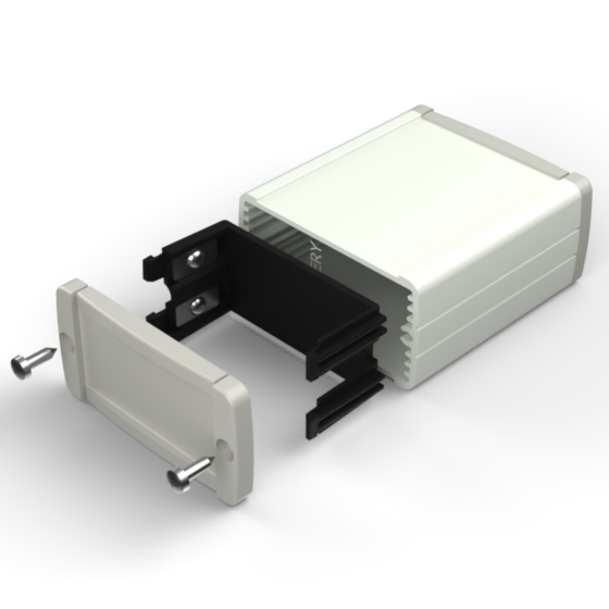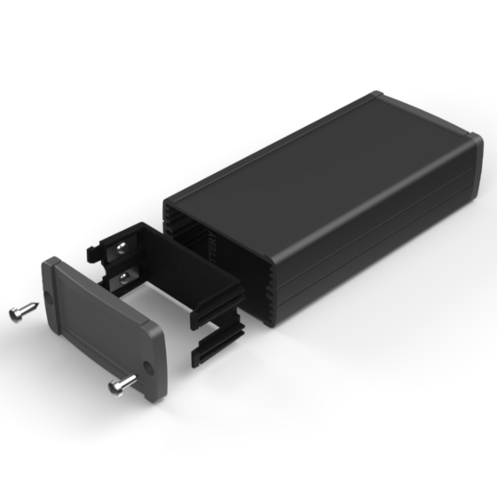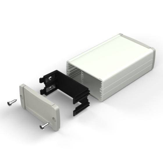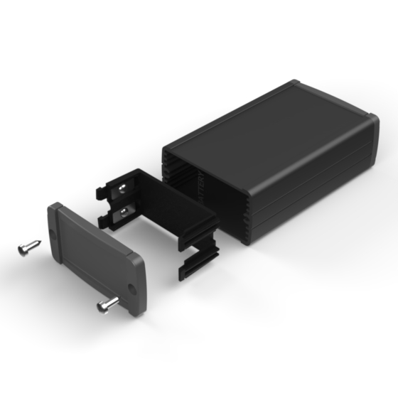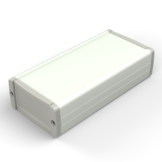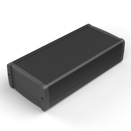 Contenitori in alluminio estruso con verniciatura esterna di elevato standard qualitativo. Due pannelli frontali in ABS, guide interne per PCB e parte superiore con area ribassata per l’alloggiamento di una tastiera a membrana. I modelli contrassegnati con “-B” sono dotati di vano porta-batteria per due stilo da 1,5V o una pila da 9V. Dodici modelli a disposizione di diverse dimensioni. Chiusura con 4 viti.
