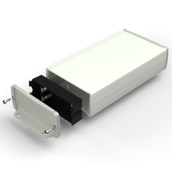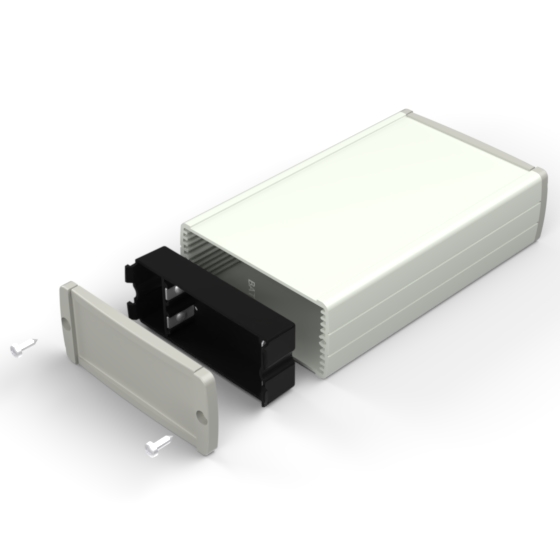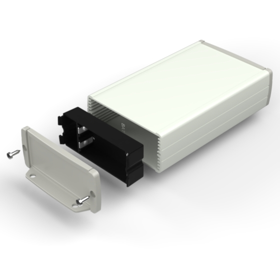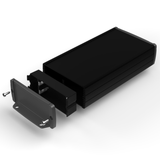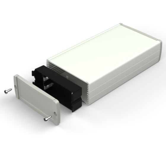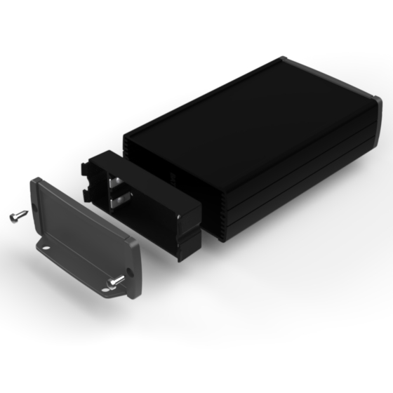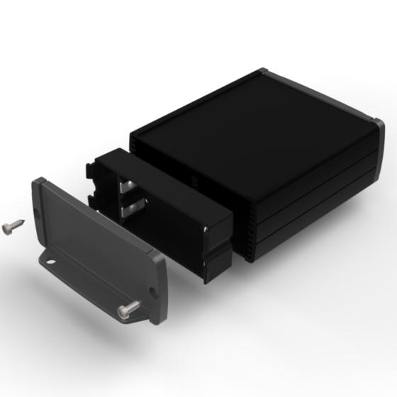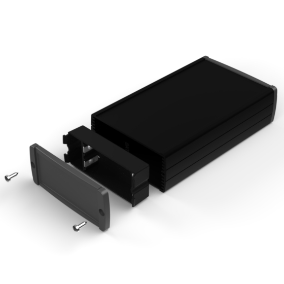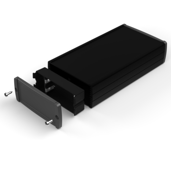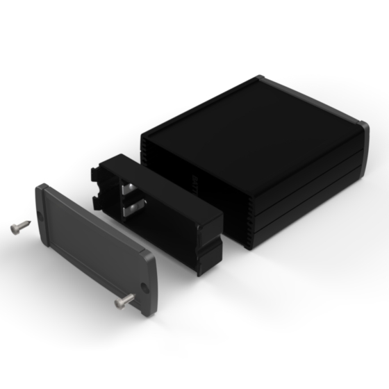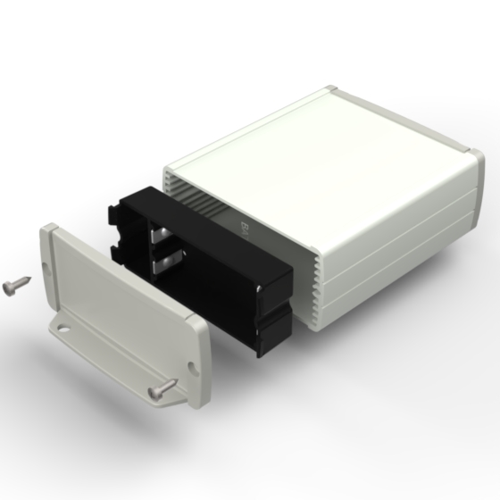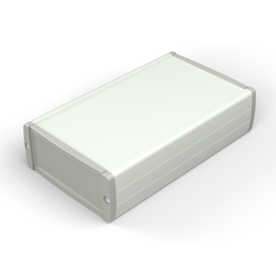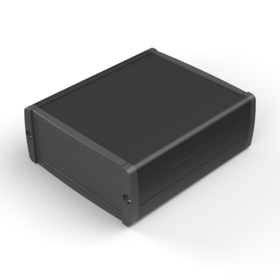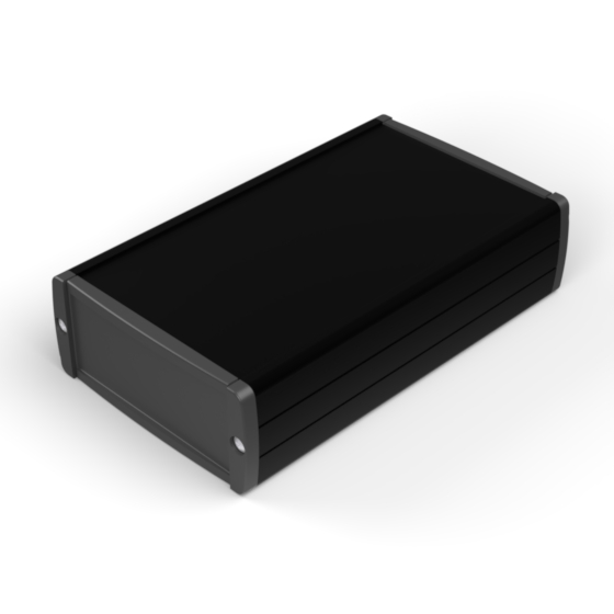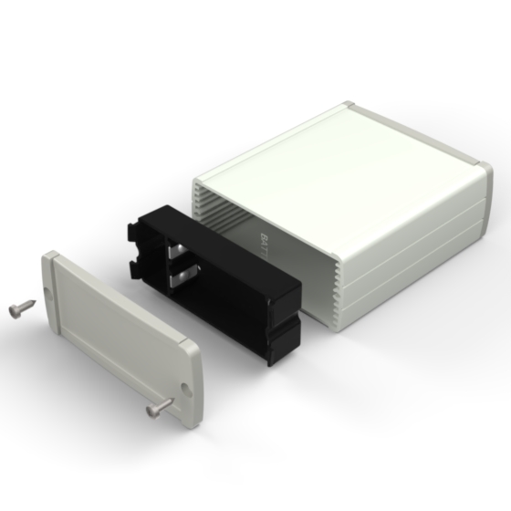 Contenitori in alluminio estruso con verniciatura esterna di elevato standard qualitativo. Due pannelli frontali in ABS, guide interne per PCB e parte superiore con area ribassata per l’alloggiamento di una tastiera a membrana. I modelli contrassegnati con “-B” sono dotati di vano porta-batteria per due stilo da 1,5V o una pila da 9V. Dodici modelli a disposizione di diverse dimensioni. Chiusura con 4 viti.